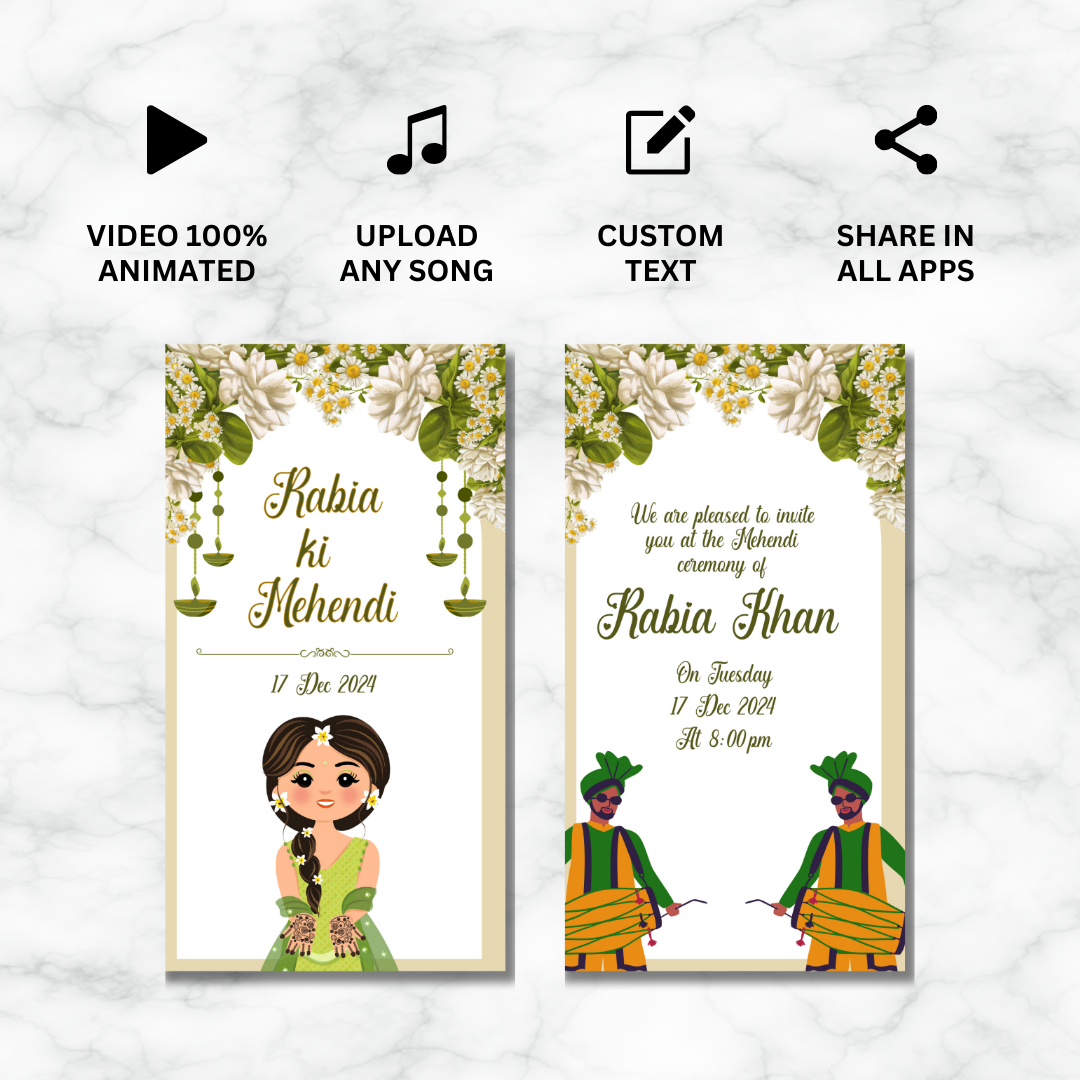 Fun and lively animated design for your Mehndi/Dholki celebration