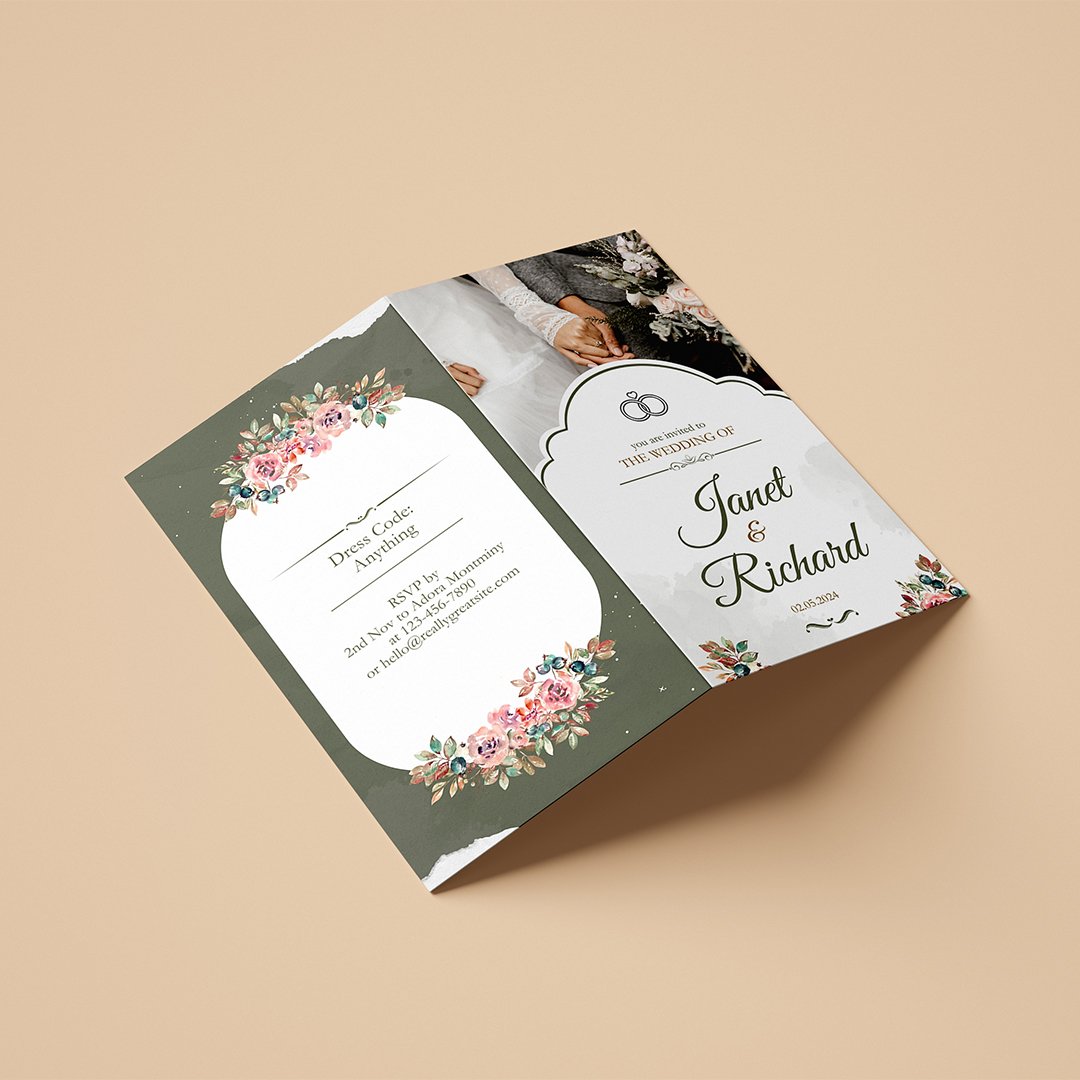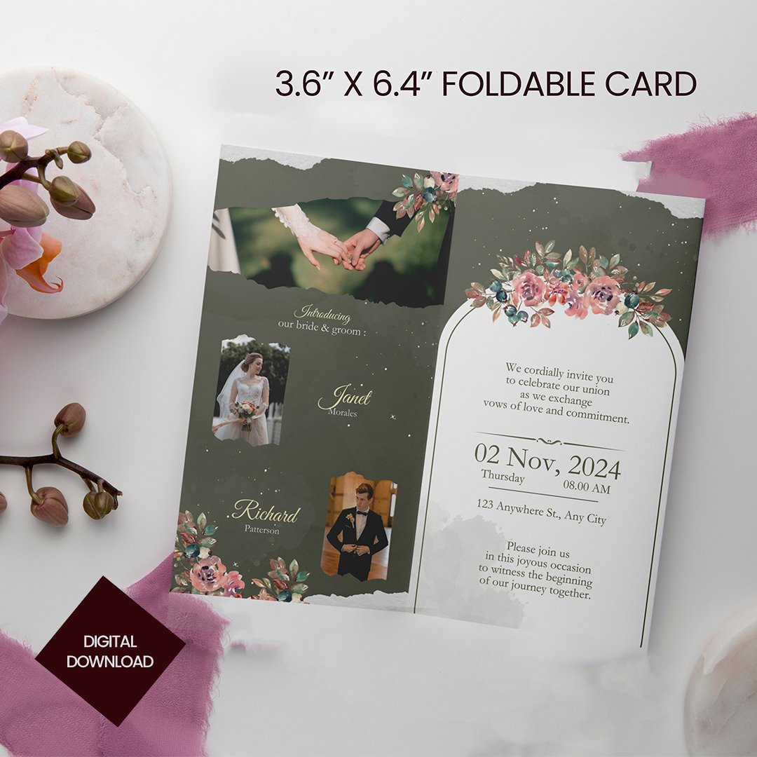 Floral Wedding Invitation, Bride & Groom Portrait Invitation, 4-Sided Wedding Invite, Printable Wedding Invitation, Custom Portrait Wedding Card, RSVP & Dress Code Wedding Card, Personalized Wedding Invitation, Digital Floral Wedding Card, Wedding Stationery, High-Resolution Wedding Invite, Customizable Wedding Card, Romantic Floral Invitation, Four-Sided Wedding Invite, Elegant Wedding Invitation, Wedding RSVP Card,DIY Printable, Wedding Dress Code Invitation.