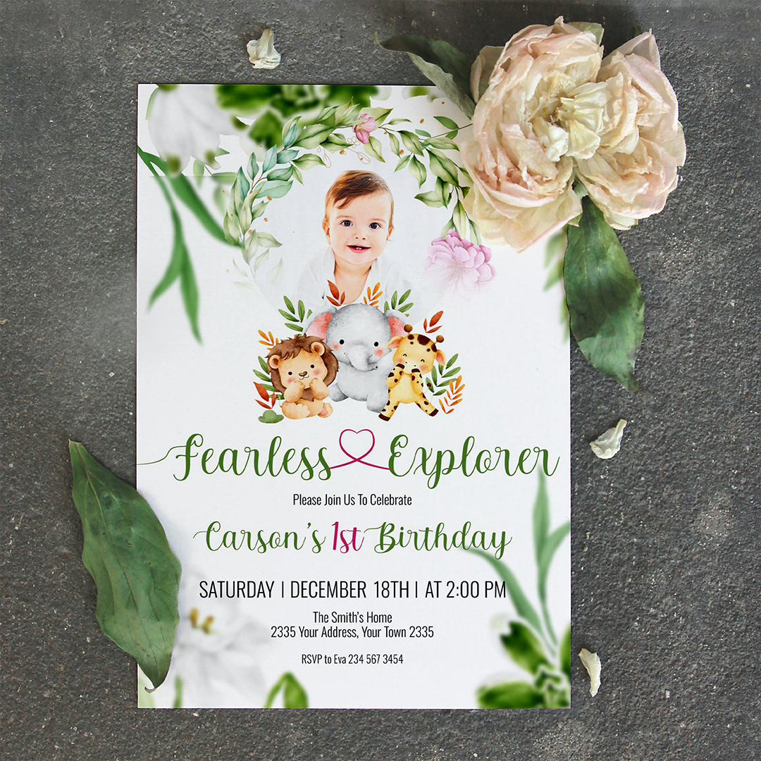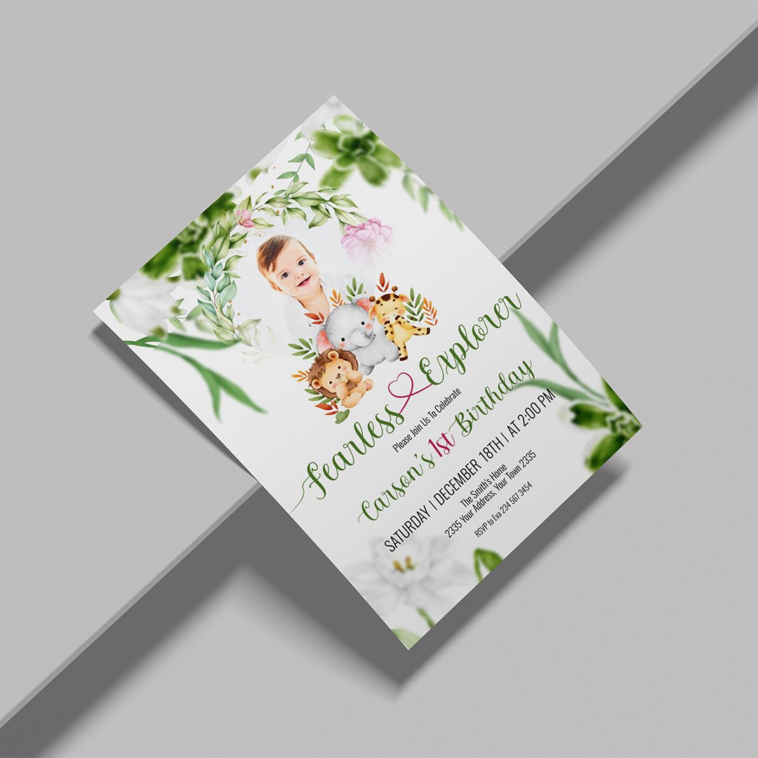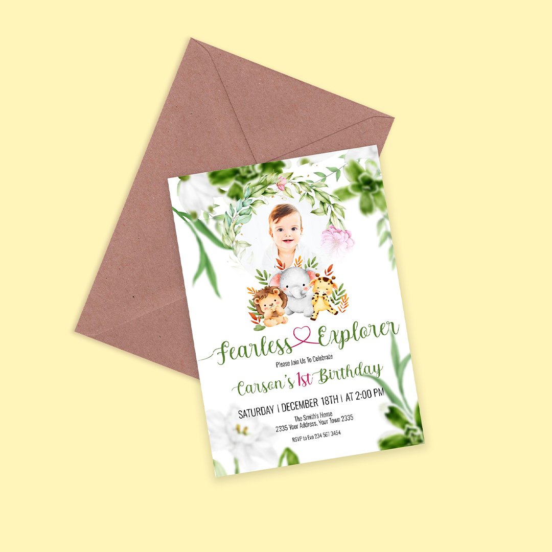 Make your child’s birthday celebration extraordinary with our custom safari-themed birthday card. It’s the perfect way to invite friends to join in on a wild jungle adventure!